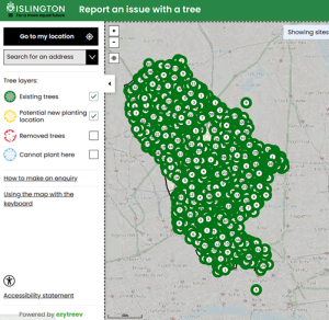 Get online and search ‘Islington Tree Map’ or click the link below: https://trees.islington.gov.uk/Trees/Map. You should see this see this: